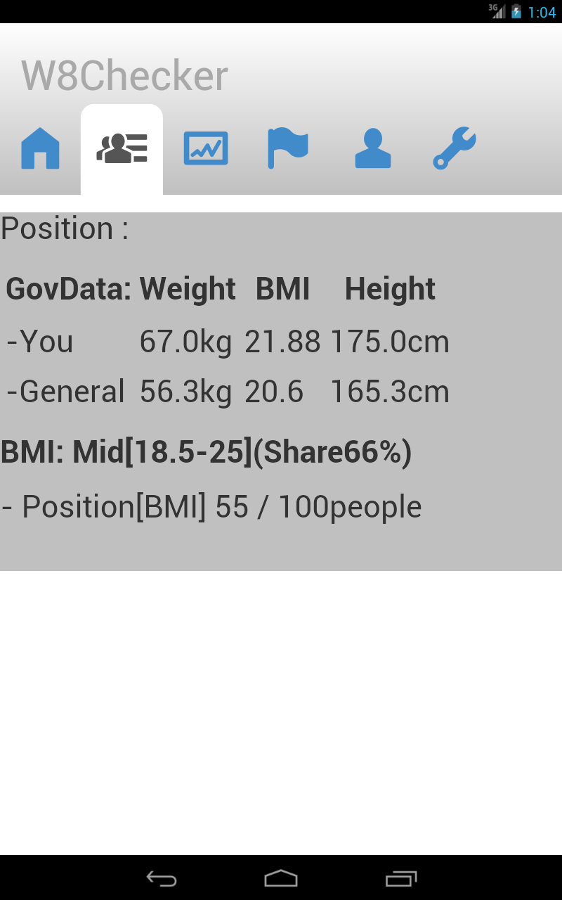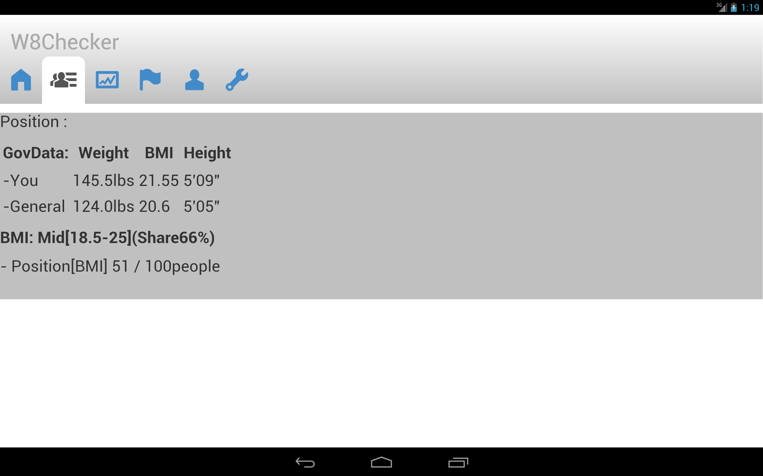 You can check not only the current ranking within your recorded weight data, but also the position in the whole people.