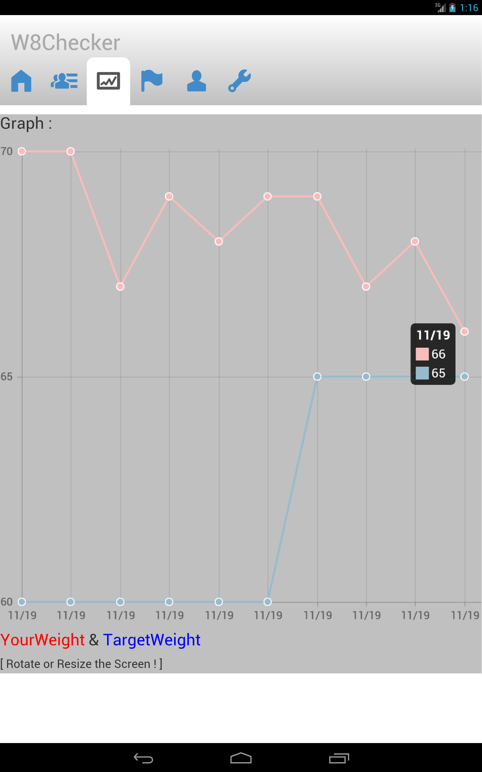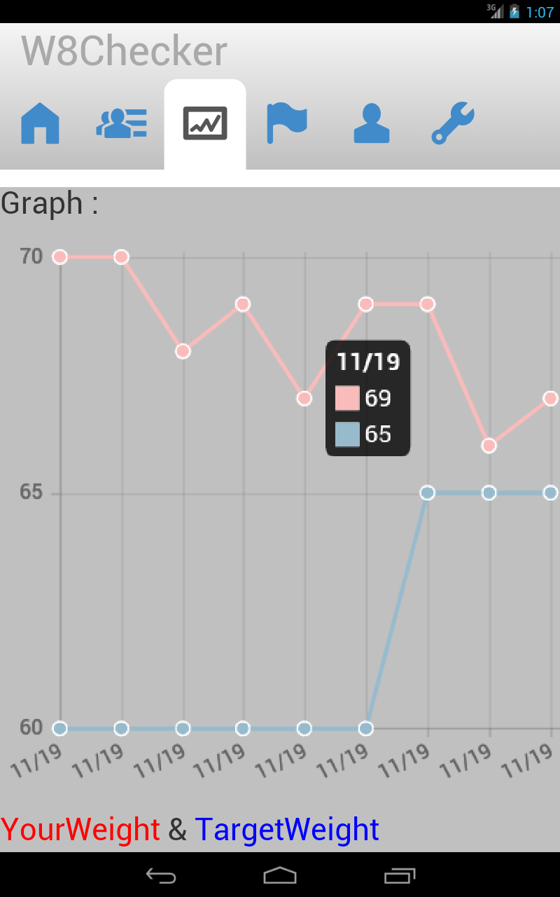 あなたの体重データを保存しよう。そして目標体重と目標期日へのアプローチの進捗をチェックしよう。