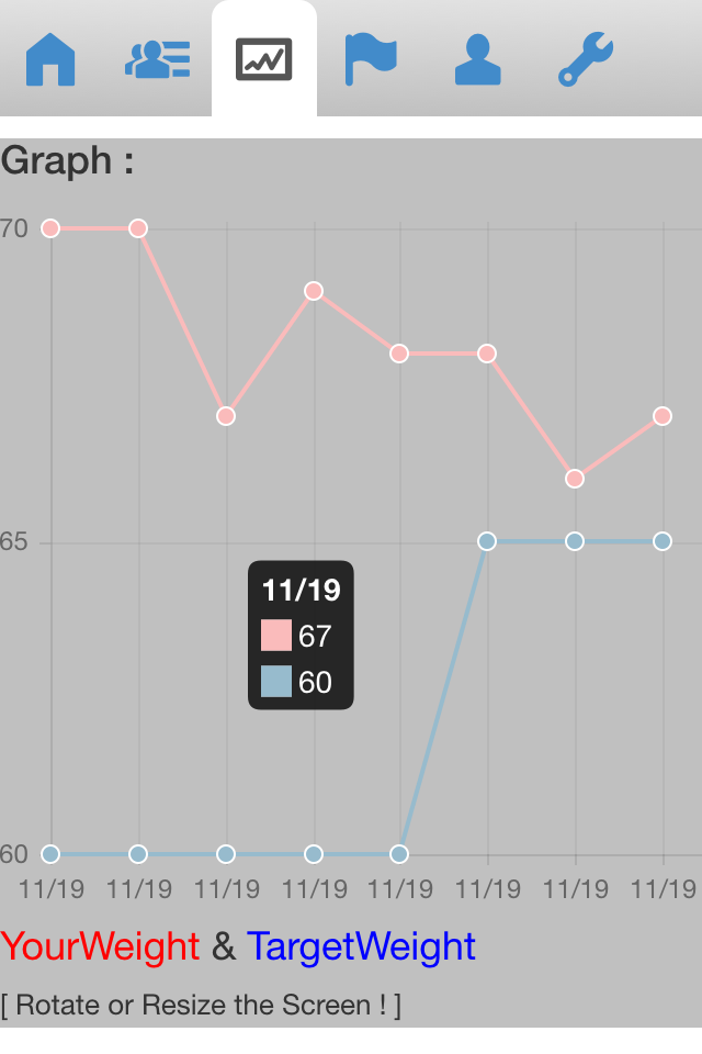 あなたの体重データを保存しよう。そして目標体重と目標期日へのアプローチの進捗をチェックしよう。